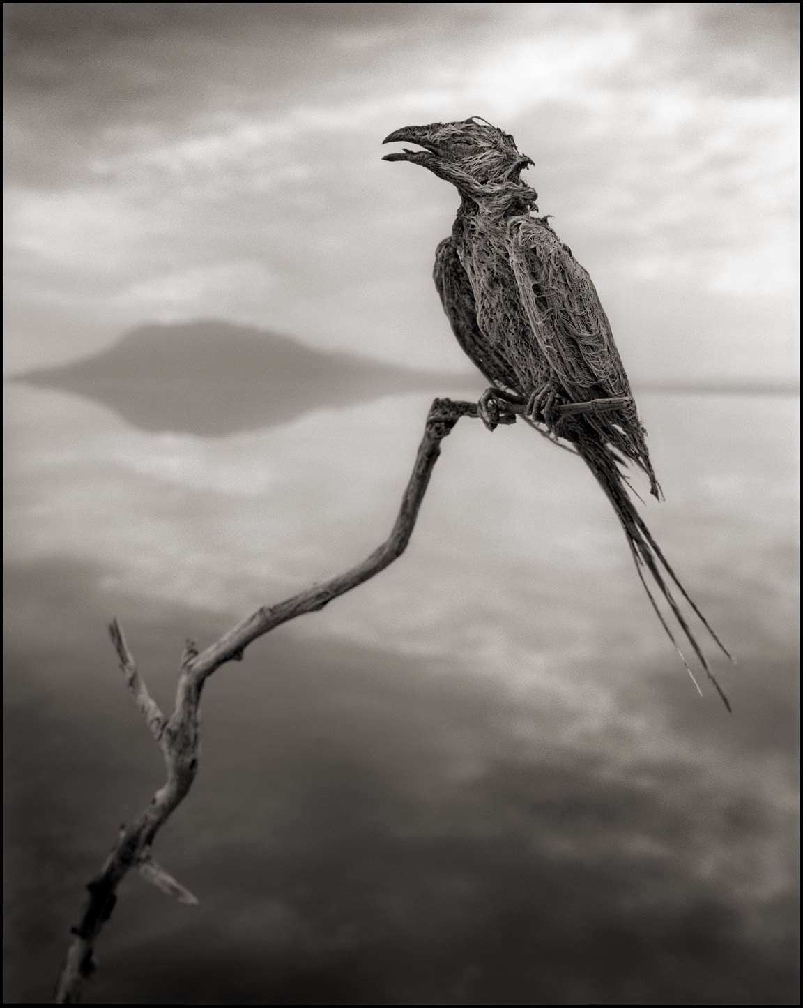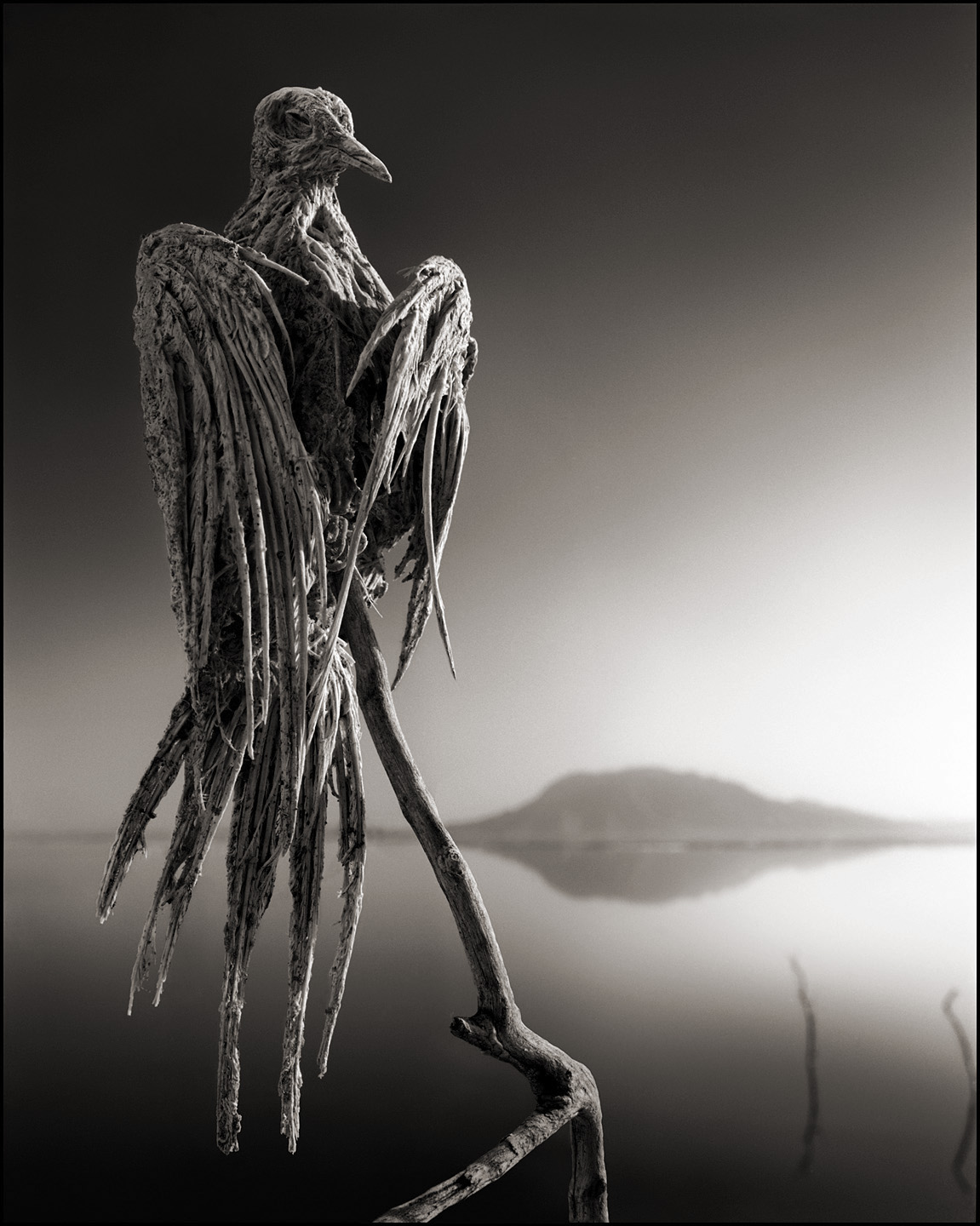 Eu inesperadamente encontrei as criaturas – todo tipo de pássaros e morcegos – ao longo da costa do Lago Natron, no norte da Tanzânia. Ninguém sabe ao certo exatamente como eles morrem, mas parece que o lago reflete bastante a luz e isso os confunde. Assim como pássaros colidem com janelas de vidro, eles caem dentro do lago.