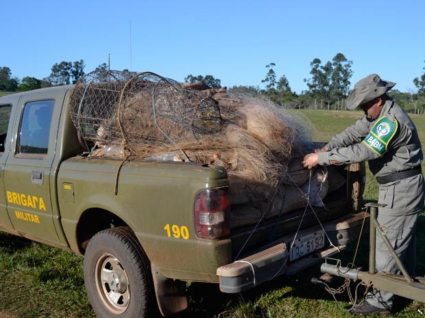 Redes de pesca foram apreendidas na operação (Foto: Eduardo Rosa/Divulgação/Brigada Militar CABM)