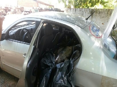 Os peixes eram transportados no bande de traz do veículo (Foto divulgação: PM-MT)O suspeito do outro lado da linha disse para o motorista oferecer dinheiro aos policiais militares. Após a conversa o suspeito levou até os policiais a quantia de mil reais para supostamente liberar o material apreendido juntamente com o condutor.