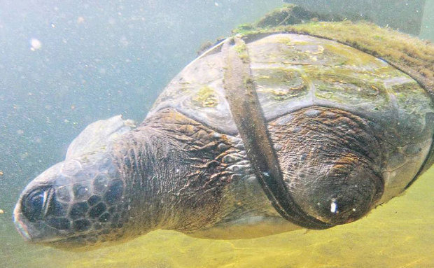 Tartaruga-verde com membros amputados por rede de pesca recebe nadadeiras artificiais