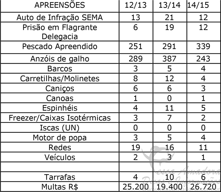 Números – segundo mês da piracema 2012/2013 – 2013/2014 – 2014/2015