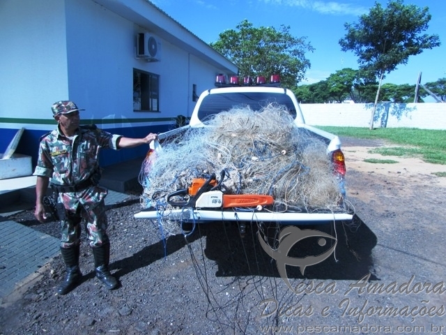 apreensao-MS 01REDES – A equipe ainda retirou do rio Paraná, entre à ponte Airton Senna à foz do rio Pirajuí, em torno de 1.000 metros de redes de pesca (petrechos proibidos). Durante a retirada do material foram soltos em torno de 22 kg de peixes, que estavam vivos e presos ao material. Os proprietários dos petrechos não foram identificados.