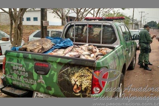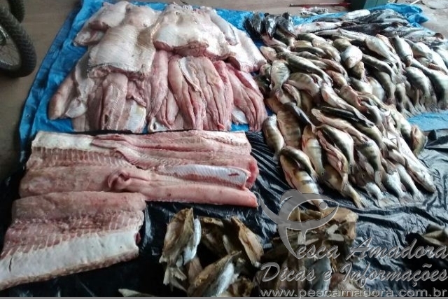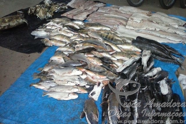 Foram apreendidos 548 kg de seis espécies diferentes: papa terra, corvina, tucunaré, pirarucu, pirarara e pintado. Uma tartaruga ainda com vida também foi encontrada, além de sete munições calibre 22. Não foi encontrado material de pesca predatória.
