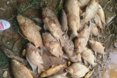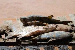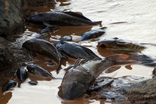 A lama proveniente do rompimento da barragem de Fundão, em Mariana (MG), já deixou ao menos nove toneladas de peixes mortos no leito do rio Doce, que cruza os estados de Minas Gerais e Espírito Santo. O rompimento ocorreu em 5 de novembro, em barragem da empresa Samarco, controlada pela Vale e pela BHP Billiton.