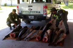 Durante fiscalização de rotina na Rota Nacional 12 sul no acesso para a cidade de Goya na província de Corrientes, a Gendarmeria National (Guarda Nacional) interceptou um automóvel que transportava 20 exemplares de pintado totalizando cerca de 400 kg.
