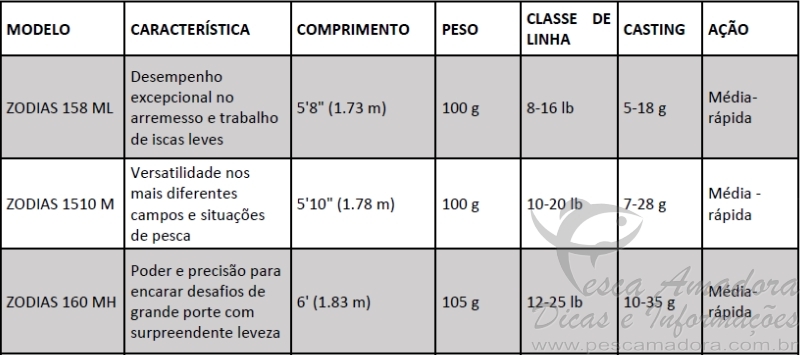 Disponíveis no mercado brasileiro a partir de janeiro de 2016 nas melhores lojas de pesca do país e com distribuição exclusiva pela CGK, as novas Zodias prometem unir alto desempenho, leveza e agradar ao gosto do brasileiro.