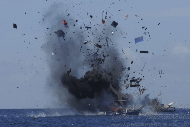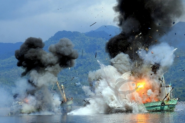 Indonesia afunda mais 27 barcos por praticarem pesca ilegal no pais 3Nessa segunda-feira a Indonésia afundou 27 embarcações como forma de coibir a pesca ilegal em suas águas. As embarcações pertencentes à Filipinas, Vietnã, Malásia e Mianmar foram explodidas ou afundadas em cinco locais diferentes em todo o país, segundo a Ministra de Assuntos Marinhos e da Pesca da Indonésia Susi Pudjiastuti.