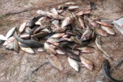 O pescado foi descartado no aterro sanitário através de laudo de veterinário particular devido a impossibilidade de perícia pela Vigilância Sanitária do município para doação dos peixes.