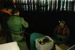 Ao ser abordada a embarcação Mestre Nando, foram encontrados aproximadamente 300Kg de Aruanã e 80Kg de Pirarucu, interpelado o comandante da embarcação e responsável pela carga sobre os documentos necessários para o transporte do pescado, o mesmo informou que não havia nenhuma autorização para o transporte do pescado.