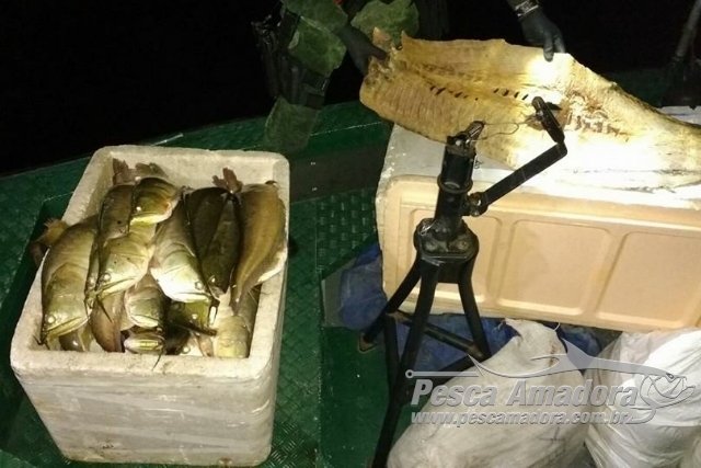 Durante policiamento na madrugada desta quinta-feira (25) foi constatada quantidade pescado, espécie Aruanã (OSTEOGLOSSUM BICIRRHOSUM) que se encontra no período de defeso, e Pirarucu (ARAPAIMA GIGAS) que se encontra permanentemente em defeso.