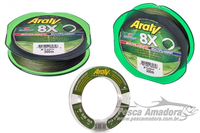 A linha Araty agora conta com seis novos tipos de linhas: Ultra, Red Spyder, Best Cast, Extreme, Army e Color Vision. Cada uma tem características particulares que permitem a melhor utilização desde competições esportivas até locais de difícil acesso. Além disso, todas são macias e resistentes, essencial para fazer nós e suportar tensões sem deformação. A outra novidade é a linha Dourado Top Force, uma linha de baixo custo, mas com benefícios excelentes. Disponível na cor verde oliva e em dez espessuras diferentes, pode ser usada em rios, lagos e litoral, tanto com carretilhas quanto com molinetes, com alta resistência e tolerância à abrasão.