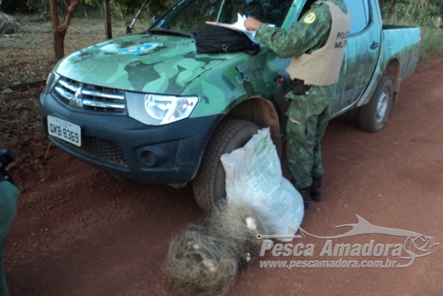 Ainda na região sul do estado, em Palmeirópolis, durante patrulhamento ambiental, um indivíduo que trafegava numa motocicleta ao avistar a viatura da polícia, dispensou um saco no chão e fugiu em alta velocidade. No volume, os militares encontraram rede de pesca, duas tarrafas, arpão de pesca, óculos de mergulho e uma faca.