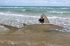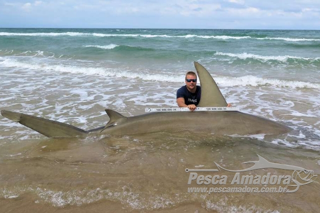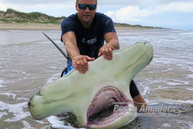 Eric Ozolis, pescador do Texas, compartilhou fotos da captura de um grande tubarão-martelo. Segundo relatou em seu perfil no facebook, o tubarão mediu pouco mais de 13 pés, cerca de 3,96 metros e 80 polegadas de circunferência, pouco mais de 2,00 metros.