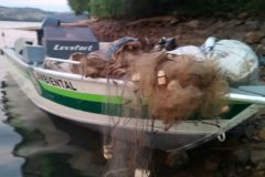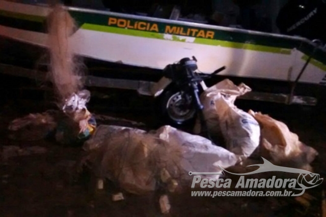 Já no alagado de Salto Santiago Também foi constatado crime de pesca predatória em Chopinzinho (PR). Na comunidade de São Luiz, durante patrulhamento aquático foram apreendidos 780 metros de redes de diversas malhas e um motor de popa de 4HP.
