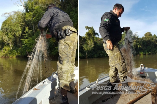 Entre os municípios de Nova Prata do Iguaçu (PR) e Três Barras do Paraná (PR), no lago Salto Caxias e nos Rios Jaracatiá, Adelaide e Guarani, foi realizado patrulhamento aquático e constatado crime de pesca irregular. Nessa ação, foram preendidos 160 metros de redes.