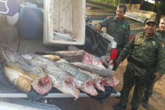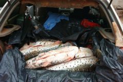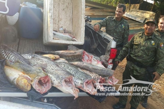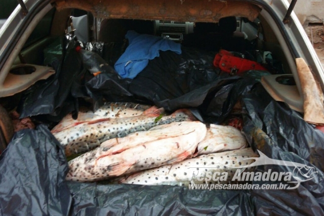 No porta-malas de um veículo foram apreendidos mais de 200 quilos, que tinham acabado de chegar ao atacadista. Foram encontrados 22 Pintados, que pesados totalizaram 209,5 quilos e duas Cacharas (4,5 kg).