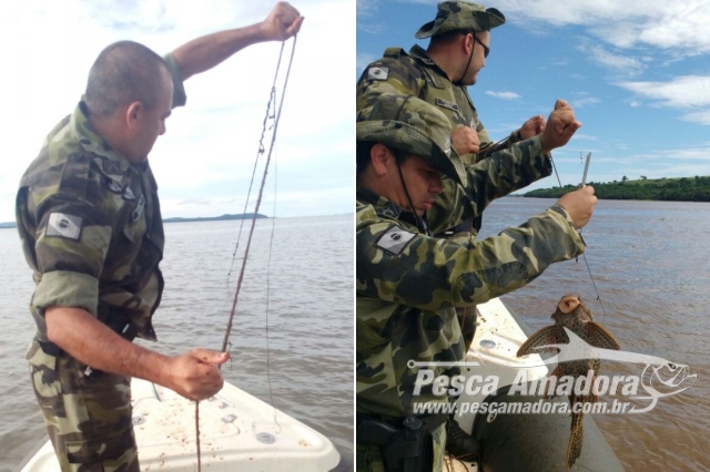 Nenhum infrator foi flagrado, os policiais ainda libertaram alguns peixes que estavam vivos presos nos petrechos ilegais.