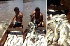 Um vídeo onde um homem aparece em um barco a remo, capturando dezenas de curimbas com um puça (rede utilizada para retirar peixes), tem repercutido nas redes sociais no início dessa semana.