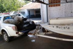 Os policiais receberam a denúncia sobre a pesca predatória nas proximidades das ilhas remanescentes pelo lago da UHE (Usina Hidrelétrica) Engenheiro Sérgio Motta, no Rio Paraná, e, durante patrulhamento aquático, abordaram uma embarcação. O condutor do barco, ao notar a aproximação da viatura, empreendeu fuga, mas foi contido.