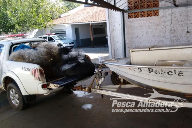 A polícia fiscalizou o acampamento e localizou  2.445 metros de redes, que estavam com vestígios de terem sido usadas recentemente, inclusive com restos de cabeças de peixes ao lado, segundo a corporação.