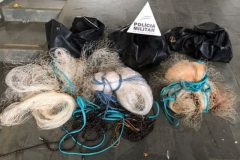 Os Militares flagraram o grupo quando praticavam pesca predatória próximo a corredeiras com uso de três tarrafas e câmaras de ar como boias para flutuarem.