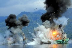 Indonésia destrói 81 barcos que praticavam pesca ilegal no país