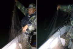Segundo informou o Sgto. Cláudio, o material predatório foi recolhido em pontos distintos. Entre as redes, cerca de 200 exemplares de peixes de diversas espécies estavam enroscados ainda vivos no material predatório. Os policiais realizaram a retirada e os devolveram para a água, nenhum infrator foi encontrado no local.