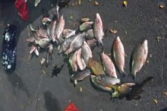 Segundo o tenente Ivo Moraes, o flagrante aconteceu com a ajuda de câmeras de monitoramento. Os dois homens estavam pescando em local proibido, com utilização de tarrafa, e já haviam retirado da água 50 kg de peixes de espécies como curimbatá, piau, cascudo e dourado.