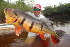 Andrea Zaccherini com o maior tucunare fisgado em Sta Izabel do Rio Negro - 29lbsOs tucunarés são os peixes que mais atraem pescadores por causa da briga durante a captura. A espécie açú, pode passar dos 80 cm e atingir peso médio entre 8 kg e 11 kg.