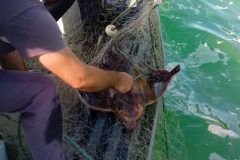 Segundo a corporação, uma equipe realizava patrulhamento preventivo quando se deparou com uma rede de espera, em local proibido. Ao ser recolhida, constatou-se a existência do animal, ainda vivo. A rede foi imediatamente cortada e a raia, da espécie Ticonha, foi solta de volta ao mar.