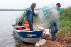 Fiscais apreendem 2 mil metros de rede na Lagoa de Imboassica em Macaé (RJ)