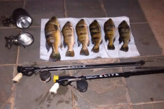 Com os infratores foram apreendidos 6 exemplares de peixes da espécie Tucunaré, totalizando 7,5 kg, sendo que os pescados apresentavam sinais de perfuração, incorrendo no disposto no artigo 7º, inciso ll, e artigo 36, da instrução normativa Ibama n° 26/2009, e parágrafo 1º , inciso ll, da resolução sma nº 48/2014.