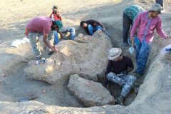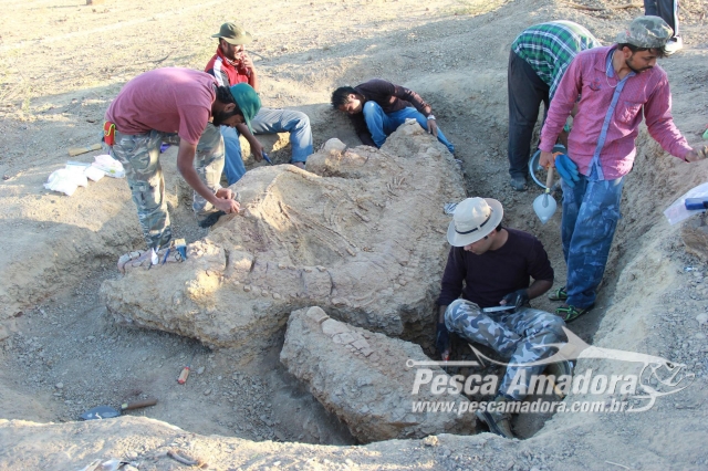 O esqueleto do ictiossauro estava encravado em rochas sedimentares extremamente duras e retirá-lo exigiu um trabalho extenuante: o clima da região é árido e severo, com temperaturas atingindo mais de 35ºC.
