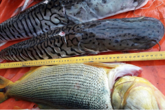 Os infratores, todos residentes em Ibiporã (SP) voltavam de uma pescaria e estavam em dois veículos. Em um WV saveiro, onde estavam um mecânico de 57 anos e seu filho de 25 anos foram apreendidos 18 kg de pescado (cachara e dourado), sendo os exemplares abaixo da medida permitida. Havia exemplar de dourado com 53 centímetros, quando o tamanho mínimo de captura é de 65 centímetros para a espécie. Cada infrator foi autuado administrativamente e foi multado em R$ 1.360,00.