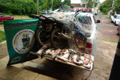 Os fugitivos abandonaram uma motocicleta e uma bicicleta. Outra motocicleta pertencente a pessoa que foi presa em flagrante também foi apreendida. No total, foram apreendidos 23 kg de filé de pescado das espécies cachara e pintado e duas tarrafas. A PMA também o autuou administrativamente e o multou em R$ 5.000,00. O infrator responderá pelo crime ambiental de pesca predatória durante período de piracema e poderá pegar pena um a três anos de detenção. Os fugitivos serão identificados e também serão multados em R$ 5.000,00 cada um e responderão pelo mesmo crime ambiental.
