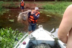 Segundo a polícia, ao perceber a aproximação da patrulha ele pulou na água e tentou fugir nadando. O infrator ainda tentou se esconder entre os aguapés, vegetação aquática que se acumula nas margens do rio, porém foi localizado e detido.