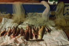 No local em que o infrator estava hospedado, foram encontrados 18 kg de pescado das espécies dourado, cachara e pintado, sendo vários exemplares fora da medida permitida, além de três tarrafas, as quais o infrator também utilizava para pescar na cachoeira.