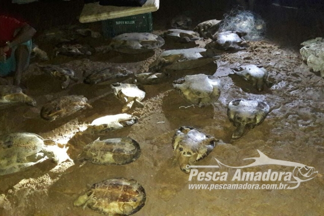 Com os infratores, foram apreendidas 25 tartarugas e 60 kg de pescado irregular já limpos e separados em postas. Segundo informou, os policiais e os servidores do Ibama faziam um patrulhamento no Rio Araguaia, perto de uma fazenda. Foram apreendidas também, redes de pesca utilizadas na pesca ilegal.