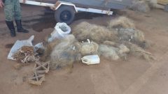 Além das redes, os militares aprenderam 108 pindas, também conhecido por anzol de galho, 55 anzóis presos a garrafas pet, deixados à deriva nas águas à espera de peixe, um motor e um barco. As apreensões fazem parte de uma operação que ainda está em andamento.