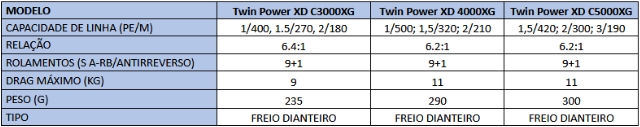 Como o nome sugere, as engrenagens usadas no novo Twin Power XD (“extrema durabilidade”), da Shimano, são nada menos que 70% mais fortes que no modelo anterior. Tal nível de resistência só pôde ser alcançado através de uma exclusiva tecnologia de alta precisão, que aumenta a resistência da engrenagem do pinhão sem implicar no aumento do tamanho da engrenagem. É um equipamento feito para suportar as mais severas condições de uso, seja em água doce ou salgada.