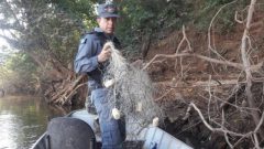 A Polícia Ambiental do 5º Comando Regional, apreendeu nessa terça-feira (8) durante patrulhamento realizado pelo rio Araguaia e também pela rodovia MT-100 que liga os municípios de Barra do Garças (MT) e Araguaiana (MT), quatro redes e 22 kg de peixes de espécies diversas.