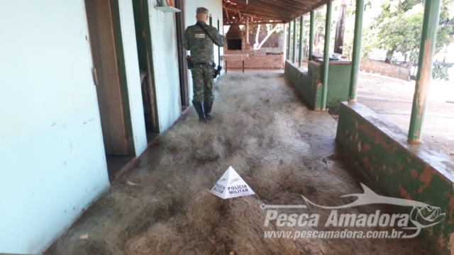 Durante fiscalização realizada nessa quinta-feira (31) pela Polícia Militar de Meio Ambiente no município de Ipiaçu (MG), em uma região conhecida como Pontal, às margens do reservatório da Usina Hidrelétrica de São Simão, na divisa dos estados de Minas Gerais e Goiás, diversas abordagens a carros, pessoas e ranchos de pesca, resultaram na apreensão de 500 metros lineares de rede de pesca, que totalizando 750 m², que estavam no interior de um rancho de pesca.