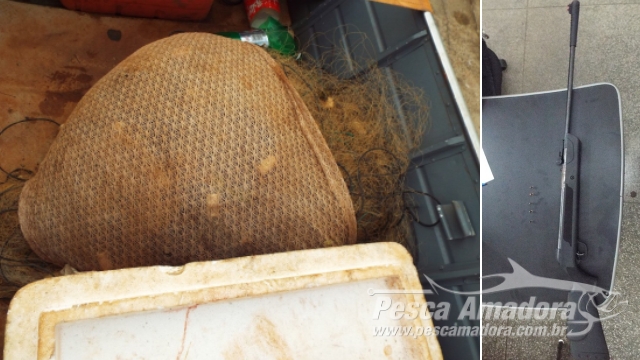 Com eles, foram encontrados 22 redes de pesca de diversas malhas (petrecho proibido), uma caixa térmica com 45 kg de pescado e ainda um animal abatido da espécie capivara, além de um rifle calibre 22, com cinco munições do mesmo calibre, sem documentação. Todo o material foi apreendido.