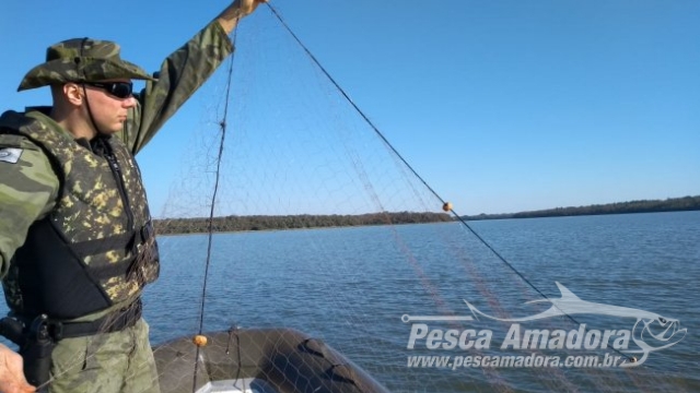Segundo a Ambiental, as redes estavam dispostas de forma que fechavam um dos braços do lago o que contraria a Instrução nº026 de 2009, do Ibama. Na mesma ação em um acesso clandestino de pesca, foi localizado à margem do lago um saco contendo 52 boias loucas e 10 metros de rede malha 1,5. Nenhum infrator foi localizado.