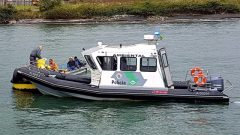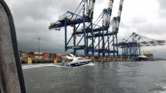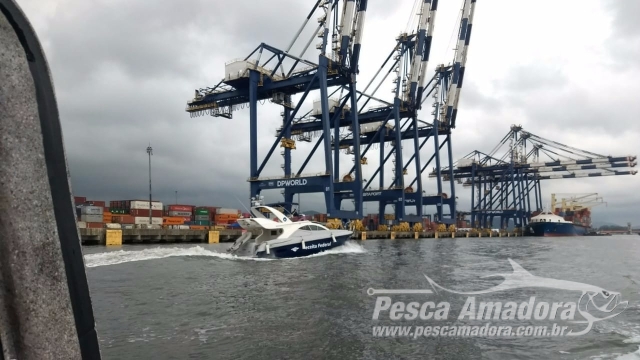 Policiais Militares da Companhia de Policiamento Ambiental Marítimo do 3° Batalhão de Polícia Ambiental do Estado de São Paulo, a CIAMAR, em conjunto com a equipe embarcada da Receita Federal, realizaram patrulhamento marítimo no interior do canal do Porto de Santos (SP), a fim de averiguar denúncia, referente a uma pequena embarcação com três tripulantes a bordo, debaixo de um dos terminais portuários.