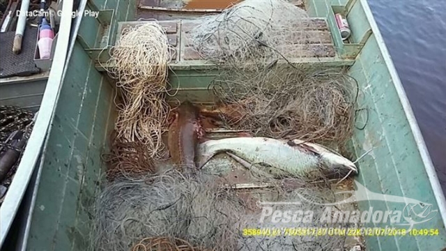 Durante fiscalização realizada pela Polícia Ambiental de Cianorte (PR) no Rio Ivaí, uma dupla de pescadores foram flagrados praticando pesca ilegal com uso de petrechos proibidos.