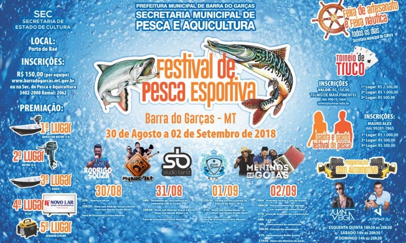 A cidade de Barra do Garças (MT), banhada pelos rios Garças e Araguaia promoverá de 30 de agosto a 2 de setembro o Festival de Pesca Esportiva. O evento foi oficialmente lançado na manhã desta terça-feira (31) pela Secretaria Municipal de Pesca e Aquicultura.