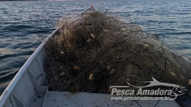 Durante fiscalização realizada pela Polícia Militar Ambiental na tarde desta sexta-feira (17), foram recolhidos 2.880 metros de redes de pesca que estavam armadas irregularmente no Rio Paraná, em Panorama (SP).