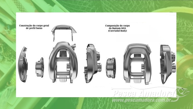 Seu novo design adota o conceito CoreSolid Body, da Shimano, construção sólida em alumínio que reduz o número de componentes do corpo da carretilha. Tanto a porção frontal, que protege o distribuidor de linha, quanto grande parte da tampa lateral que dá acesso ao carretel, foram incorporados ao chassi. Isso representa ganho extremo em rigidez, menor vibração, corpo mais compacto e até ganho em sensibilidade, graças a esse processo que representa a fronteira no processamento de metal aplicado à pesca.