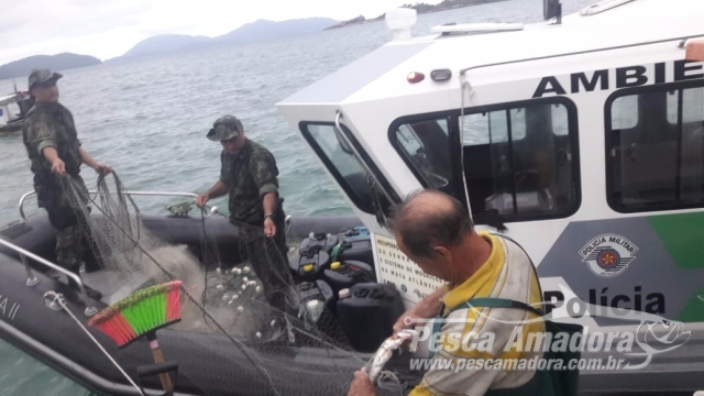 Policiais Militares da Companhia de Policiamento Ambiental Marítimo do 3° Batalhão de Polícia Ambiental do Estado de São Paulo, a CIAMAR, realizaram patrulhamento marítimo por toda a região de Ubatuba, com o intuito de coibir a pesca irregular e predatória na região, resultando na apreensão de 01 (uma) embarcação pesqueira, 10 (dez)quilos de peixes e 15 (quinze) redes de pesca do tipo “Espera Boiada”, armadas próximo a Ilha do Mar Virado, dentro da APAMLN – Área de Proteção Ambiental Marinha Litoral Norte, contrariando a legislação vigente.